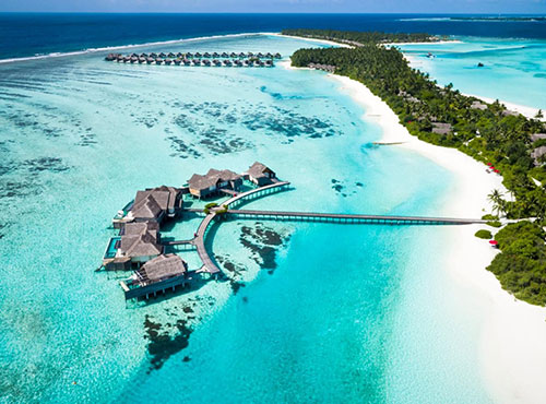 The Maldives consists of 1,192 coral islands grouped in a double chain of 26 atolls, along the north-south direction, spread over roughly 90,000 square kilometres (35,000 sq mi), making this one of the world’s most dispersed countries. It lies between latitudes 1°S and 8°N, and longitudes 72° and 74°E. The atolls are composed of live coral reefs and sand bars, situated atop a submarine ridge 960 kilometres (600 mi) long that rises abruptly from the depths of the Indian Ocean and runs north to south.